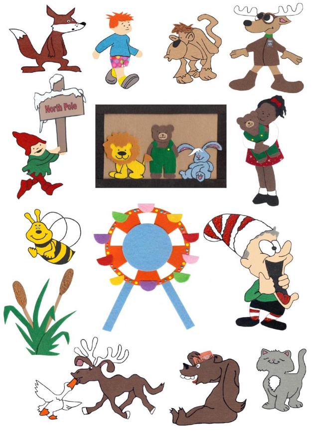 The PDF (Acrobat Reader) formatted CD-ROM makes it easy to find the story sets and pages that you want to print. Each tale/story has its own suggested separate pages. On average there are about 3 pages per story. Print the pages for a story on white paper, laminate the pages for durability, bond (spray adhesive) with soft felt, and then use scissors to cut out the pieces for your new storytelling set. It's that easy! Another quick way to make your story sets is to use iron-on T-shirt transfers. Print a story set on transfer paper, iron the transfer on to a piece of felt, then cut the story pieces out. The characters/figures also can be used in a host of other ways including bulletin boards, wall displays, literacy bags, classification activities, and identification games. However you choose to use the storytelling sets, you'll find that children love the large, expressive pieces and bright colors!
