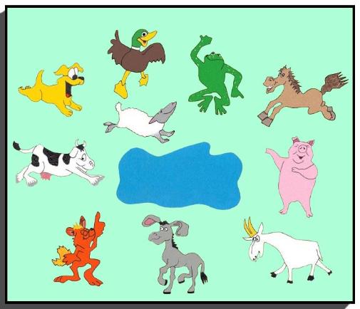 - Frog (6"), duck, horse, sheep, cat, pig, dog,
