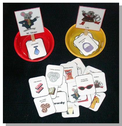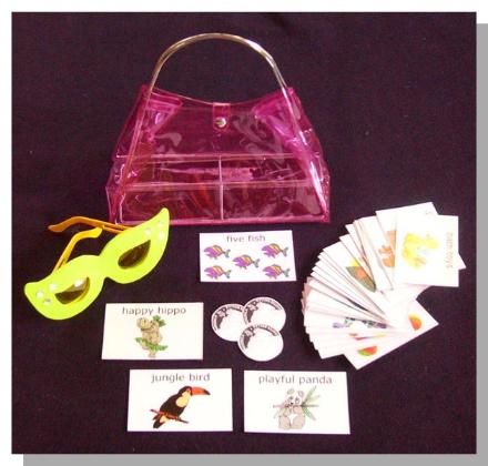 Walk, talk, and think like Lilly…All you need is a purple plastic purse, movie star sunglasses, and some quarters! Use the purple plastic purse to also sort alliteration phrases. If the phrase shows alliteration, just drop it in the purse.