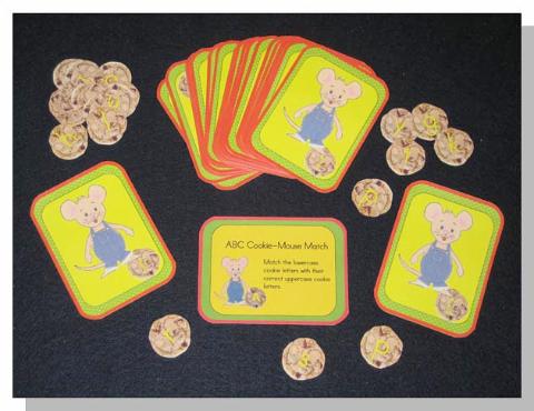 Match uppercase letters to their correct lowercase letters. Set includes 26 colorful mouse cards and 26 cookies.