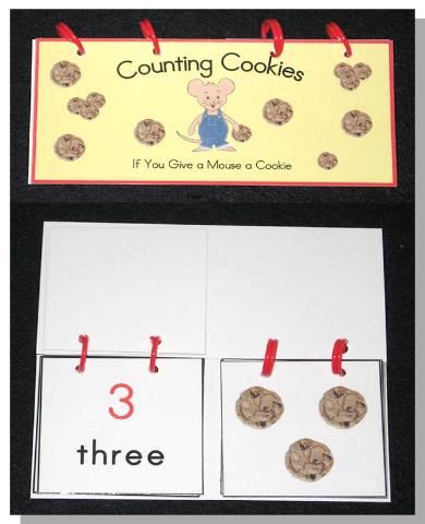 Just flip and match the number of cookies with numerals and their number words in a sturdy-bound booklet. (1-10 numeral, word, and quantity matching)