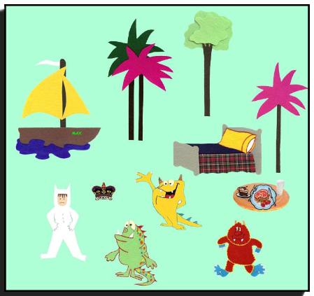 - Max in his wolf suit (7"), 3 monsters, boat